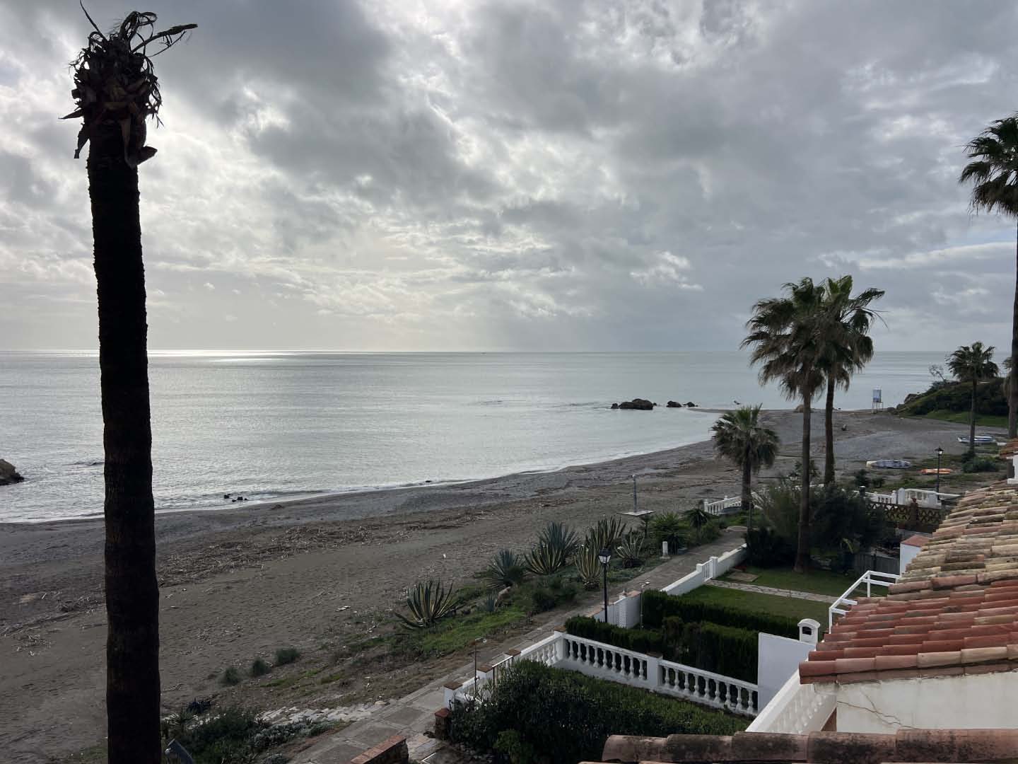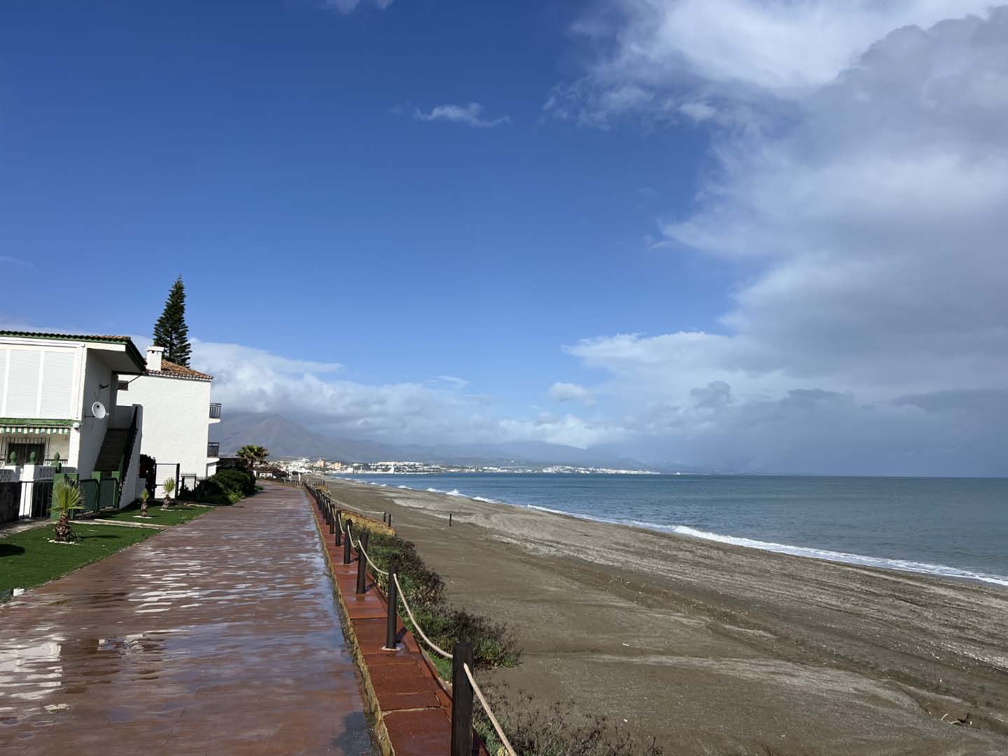 Dar is de strandtent vlakbij ons huis (nu dicht). REchtsbonven zie je eerste huis van een rij langs het strand, wij zitten ongveer op de helft