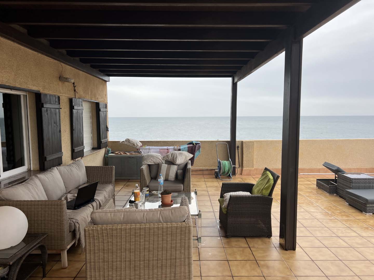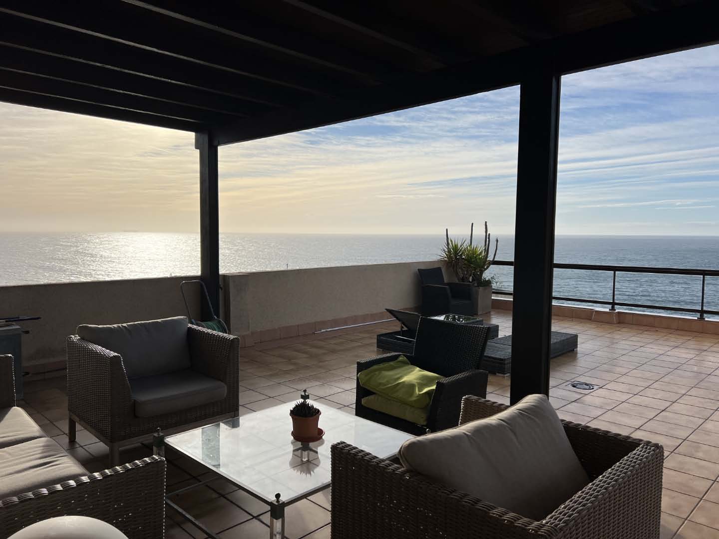 Woendag 4 feb. . Het huis is van een piloot die er meestal niet is. 's ochtends zien we hoe mooi het terras is