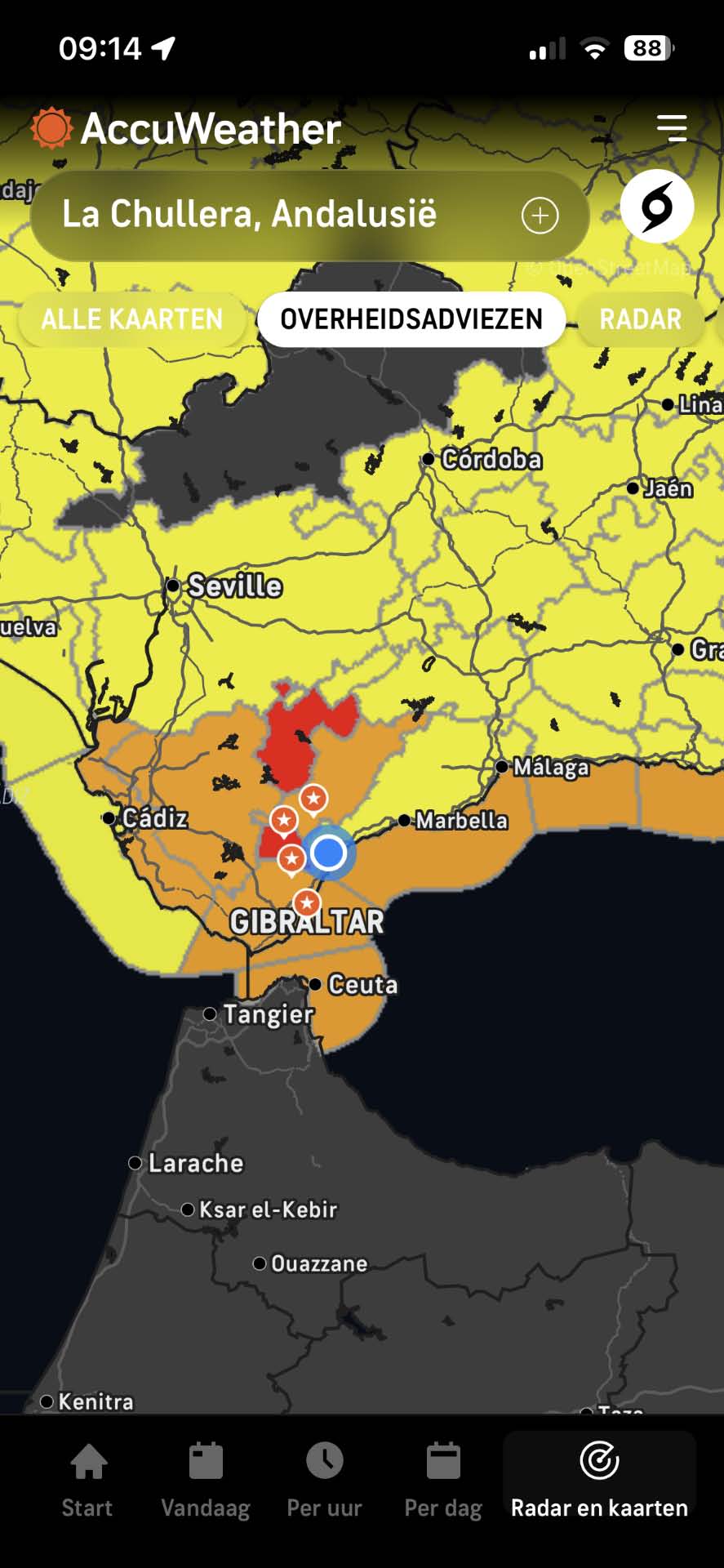 dinsdag 3 februari - eerst was het alleen oranje maar nu komt ook de code rood. (later wordt het hele gebied code rood)