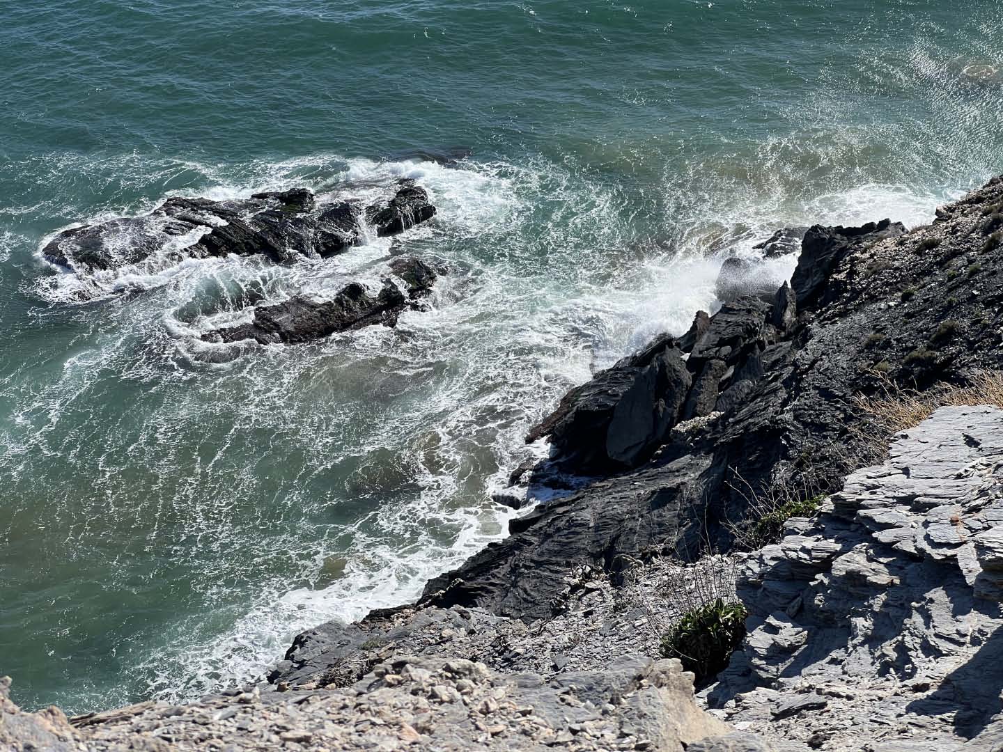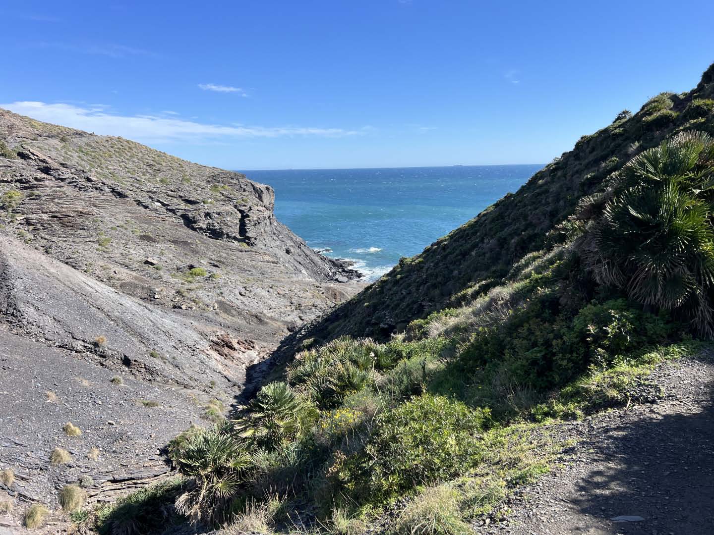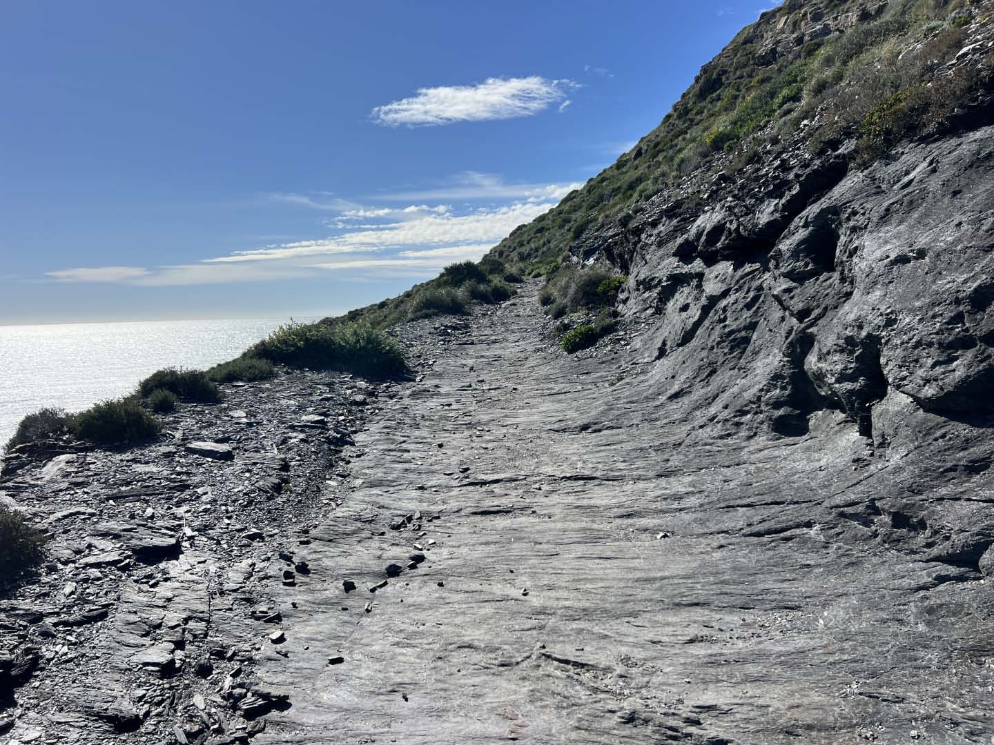 we zijn al uur verder langs de kust. even terugkijken in dit laatste stuk is er behoorlijk aan het pad geklust, anders kan je hier niet komen