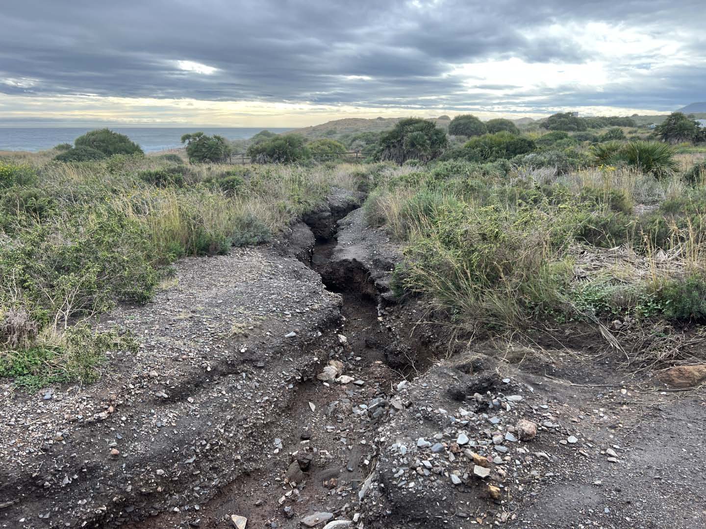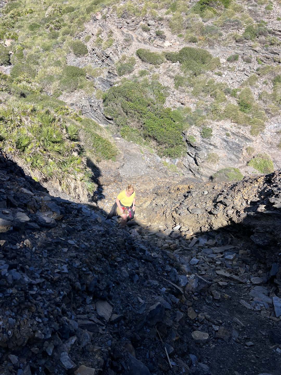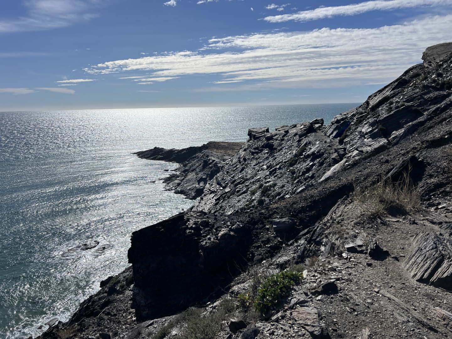 we zijn al uur verder langs de kust. even terugkijken in dit laatste stuk is er behoorlijk aan het pad geklust, anders kan je hier niet komen
