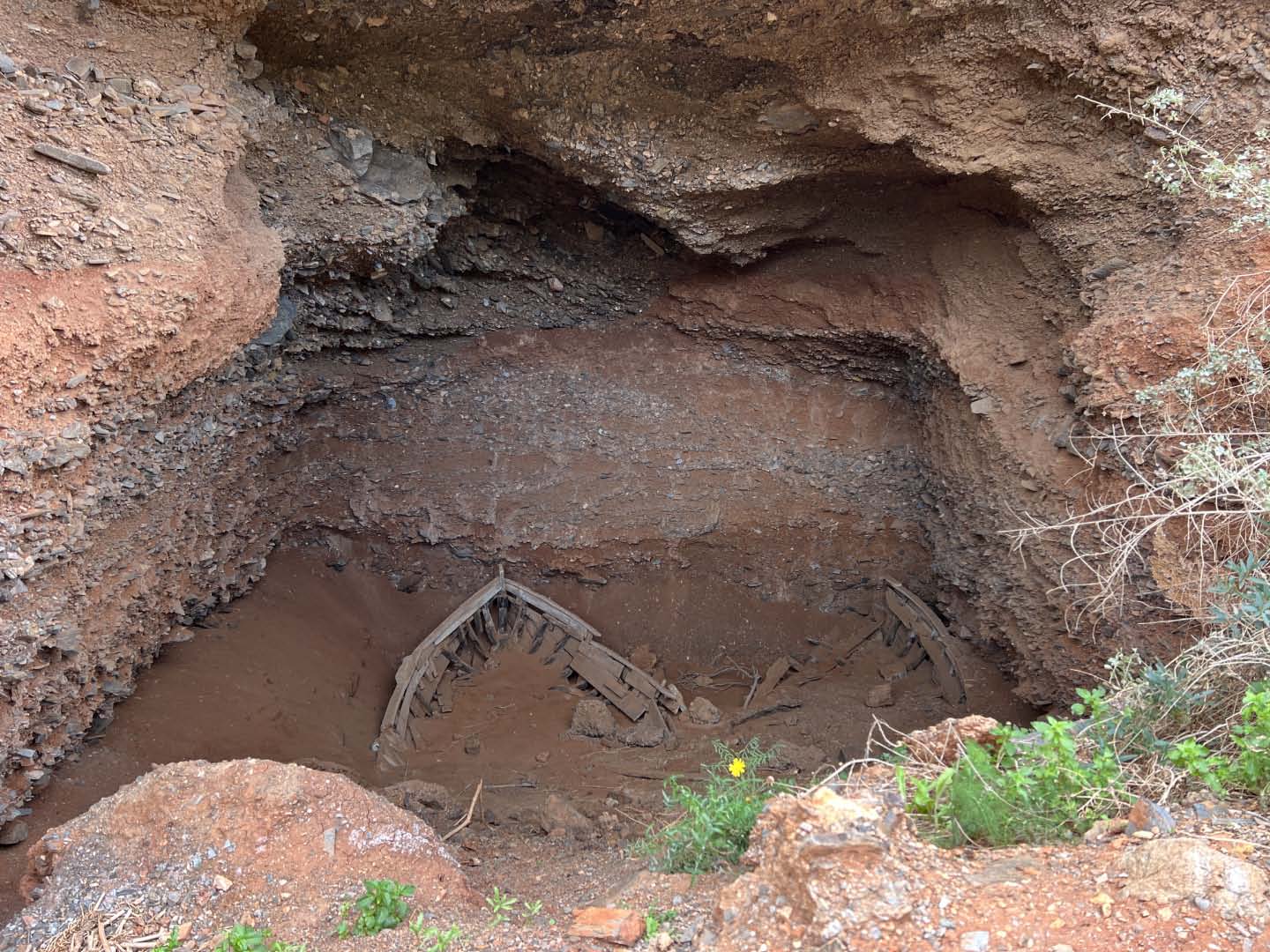 Bijzondere vondst, we weten niet waar of wanneer dit vandaan komt. Stond ook niets bij, was gewoon een soort grot langs de route