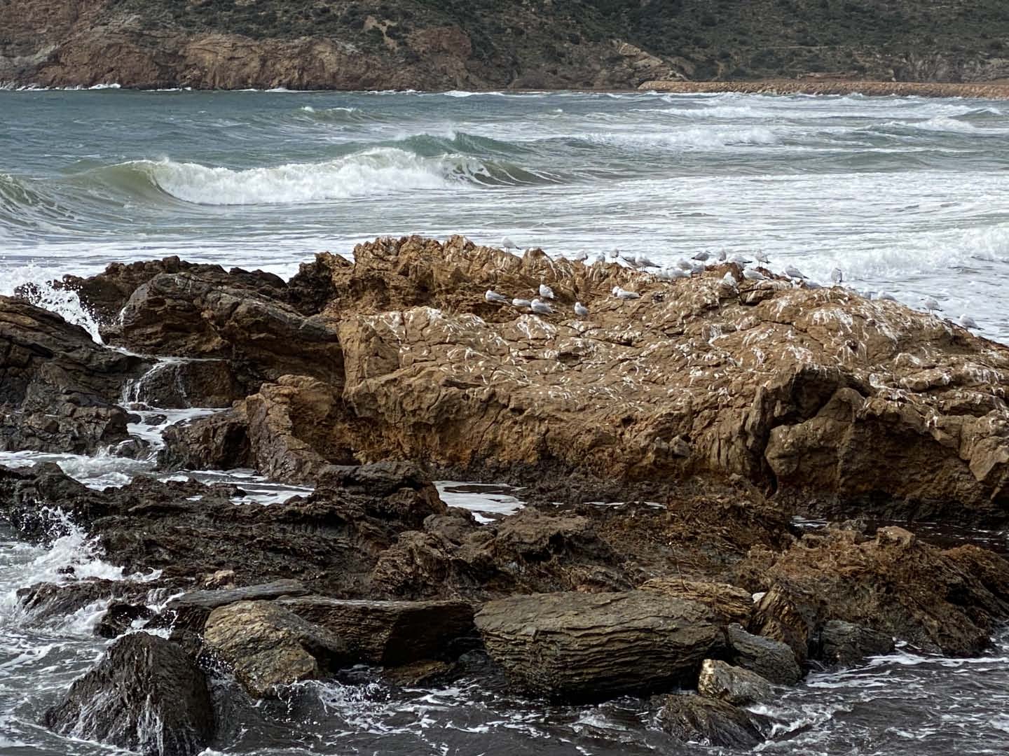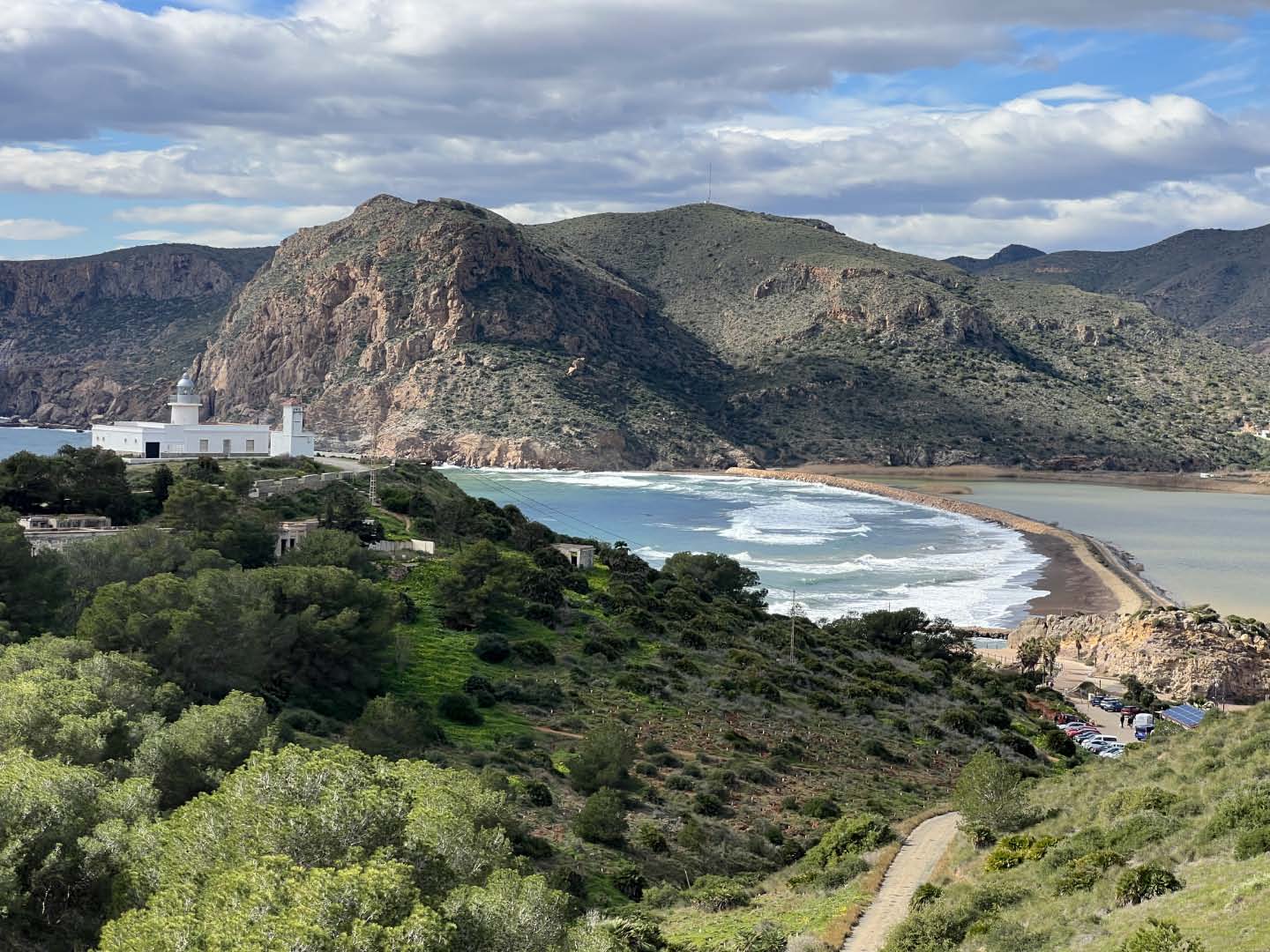 Na een een korte stop voor een broodje zijn we om 21:30 in Cabo de Palos. Vriendelijk mensen lieten ons binnen/ Het is donker maar het eerste uitzicht hebben we.
