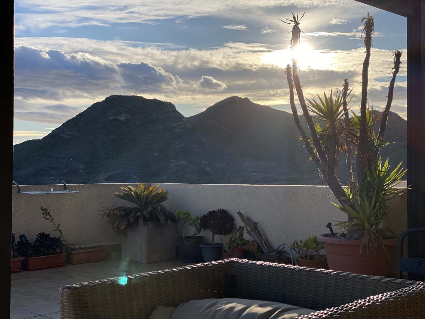 Het leuke is dat je de zee en de bergen aan alle kanten ziet en verder niets