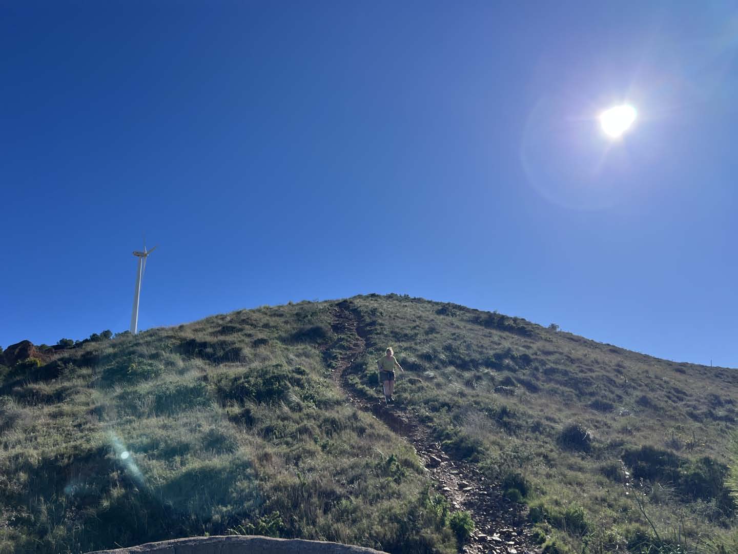 Verder langs het kustpad. Dan mag het niet meer omdat het vogelreservaat is. Dat betekent een tocht via binnenland met 220 hoogtemeters echt steil klimmen