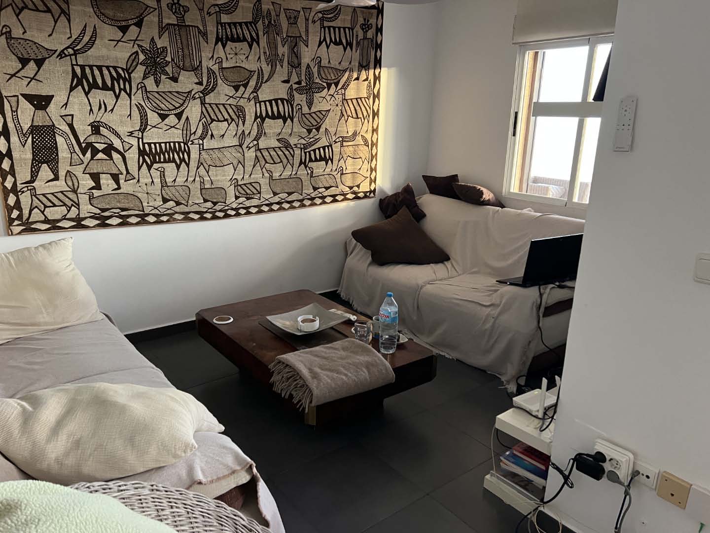 We zijn weer terug na boodschappen in de Mercadonna. Weer lekkere baquette en kaas en ham en meer. Rechter gebouw is waar wij zitten